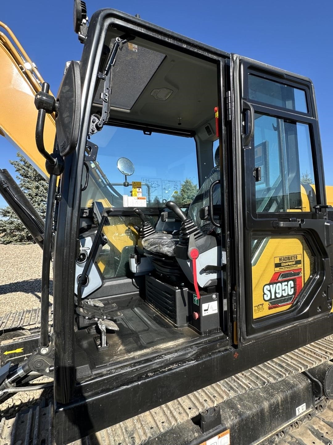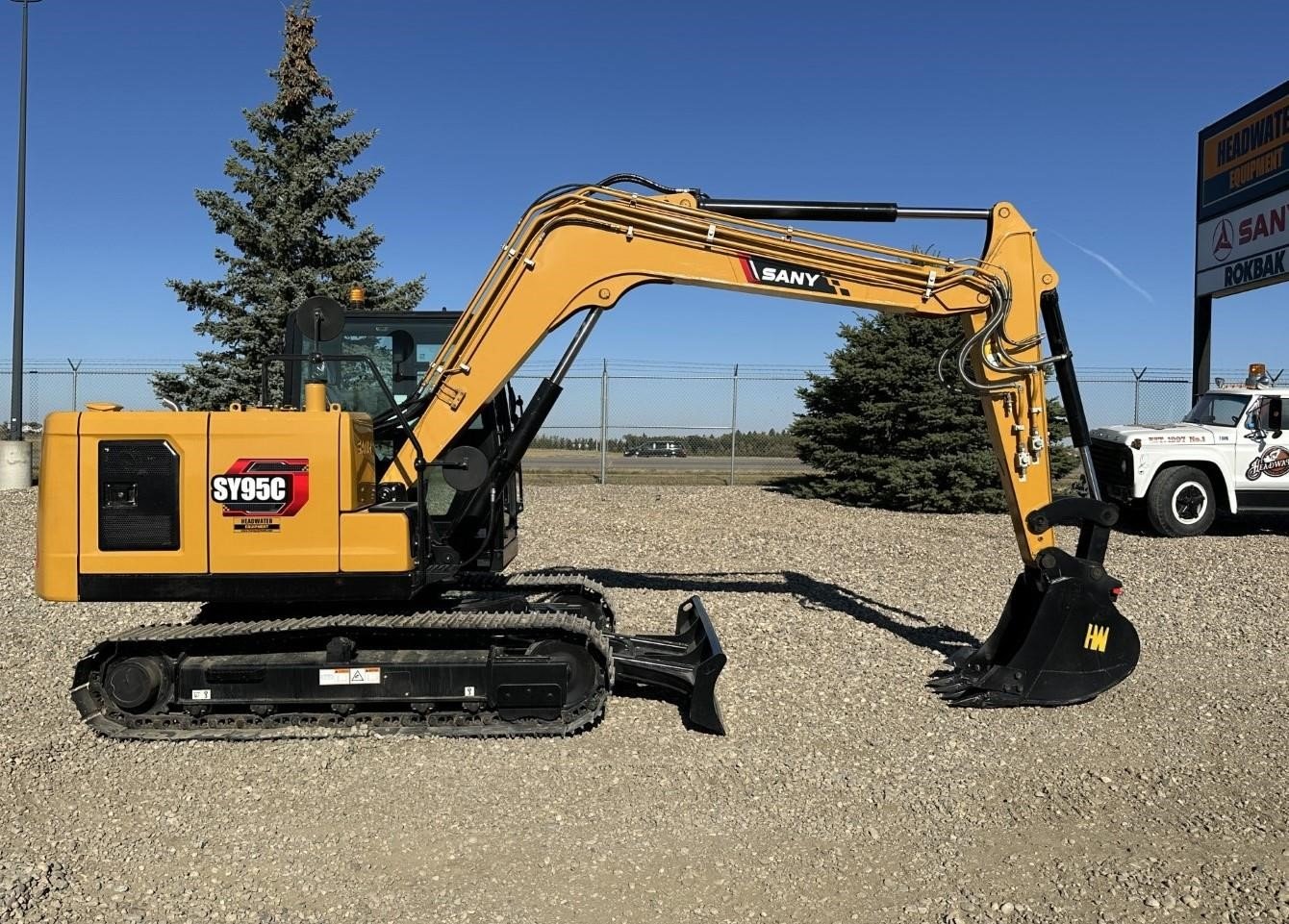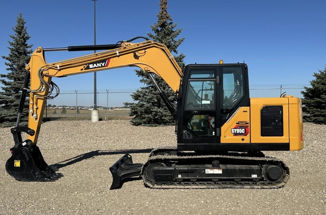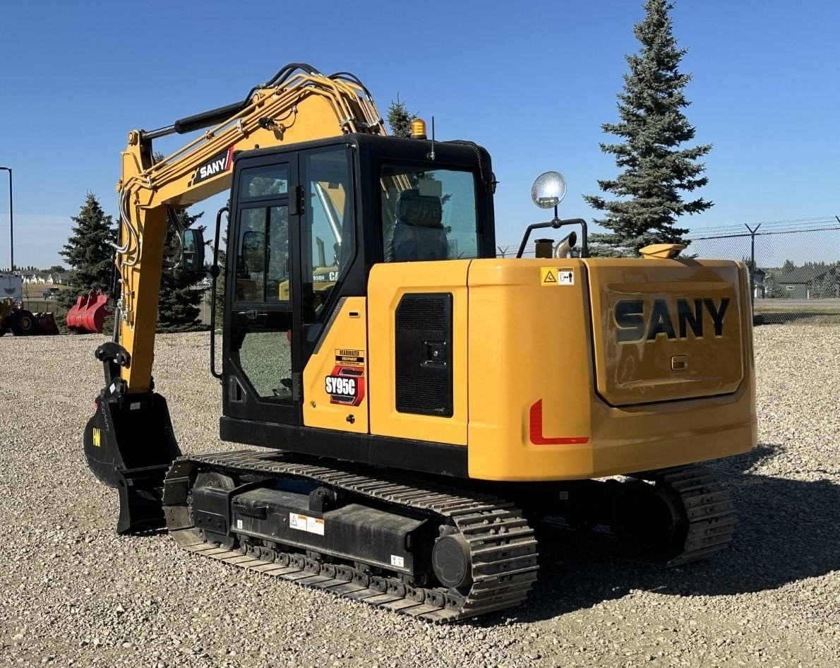 The SANY SY95C PRO is a robust 9.2-tonne compact excavator packed with power and efficiency. It’s powered by a 53.7 kW (≈ 72 hp) Yanmar engine and features load-sensing hydraulics that adapt to workload, helping cut fuel usage while maintaining performance. With a digging depth of about 14 ft 2 in (≈ 4.33 m) and a strong bucket breakout force over 60 kN, it can handle demanding digging and lifting jobs. The machine also includes operator-friendly touches like a large color display, proportional auxiliary controls for attachments, LED work lights, and a compact transport width (~2.26 m) for maneuvering in tighter sites. New to the Pro model is a standard rear view camera, updated and improved Cab, and updated body styling.