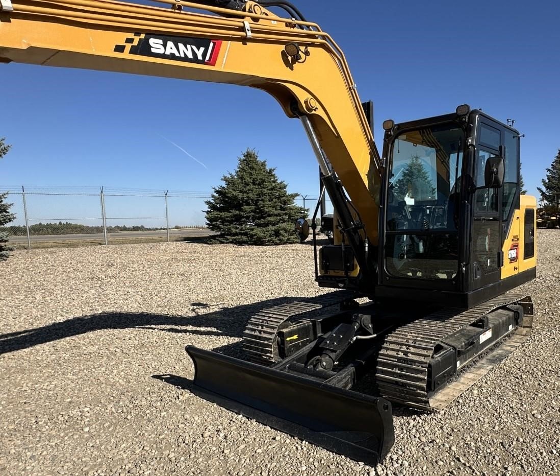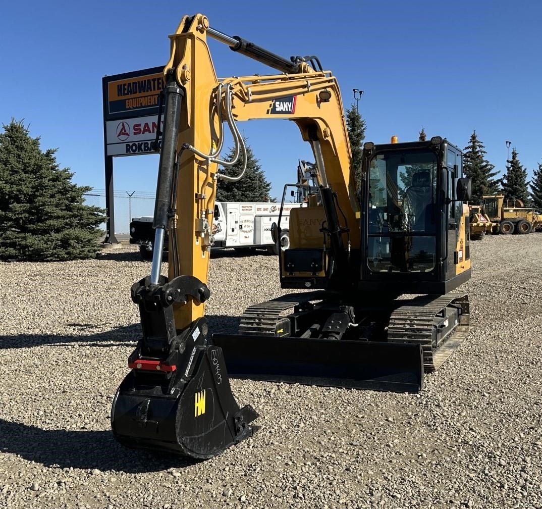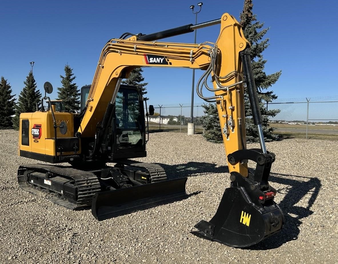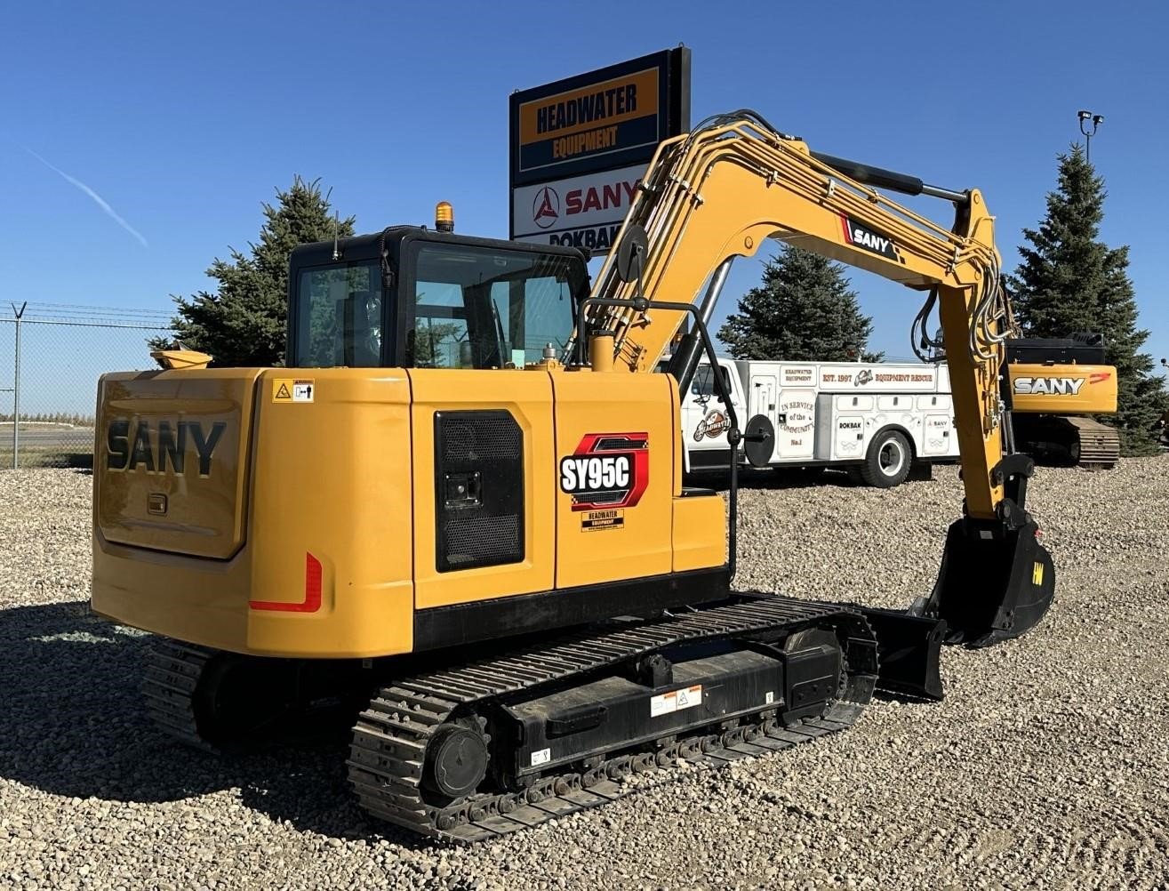 The SANY SY95C PRO is a robust 9.2-tonne compact excavator packed with power and efficiency. It’s powered by a 53.7 kW (≈ 72 hp) Yanmar engine and features load-sensing hydraulics that adapt to workload, helping cut fuel usage while maintaining performance. With a digging depth of about 14 ft 2 in (≈ 4.33 m) and a strong bucket breakout force over 60 kN, it can handle demanding digging and lifting jobs. The machine also includes operator-friendly touches like a large color display, proportional auxiliary controls for attachments, LED work lights, and a compact transport width (~2.26 m) for maneuvering in tighter sites. New to the Pro model is a standard rear view camera, updated and improved Cab, and updated body styling.